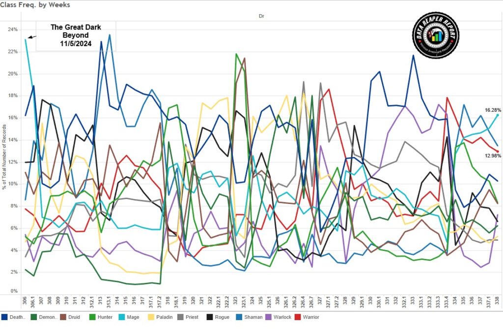 You would not think Priest or Paladin received any buffs based on their play rates. These classes have not exhibited any meaningful movement in response to the patch.