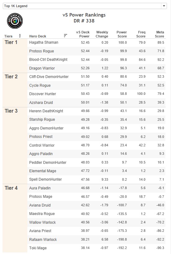 • Protoss Rogue will remain Tier 1 at top legend as long as Discover Hunter maintains its popularity. Cycle Rogue is fine. Starship Rogue is harder to justify, especially when it does not beat Blood-Ctrl DK.