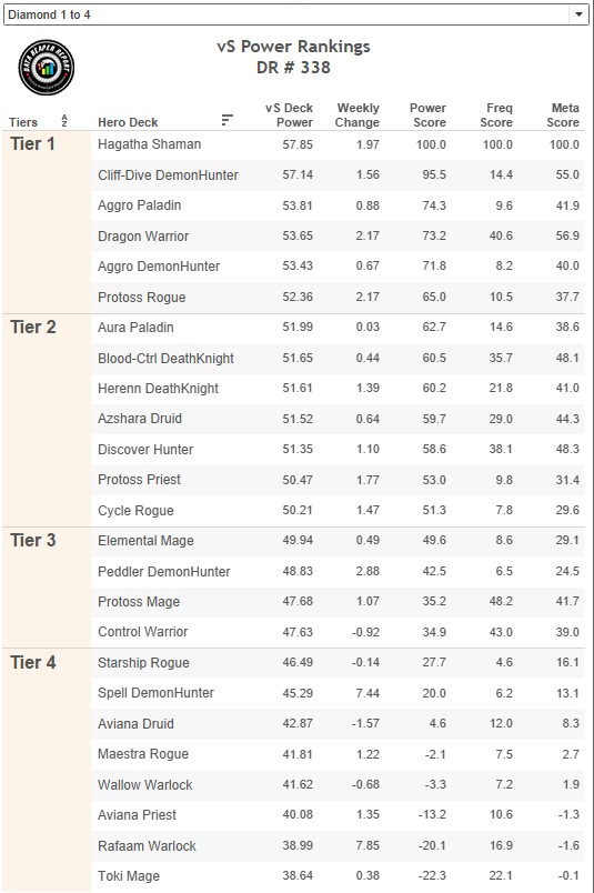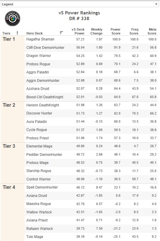 Class/Archetype Distribution | Class Frequency | Matchup Winrates | vS Power Rankings | vS Meta Score | Class Analysis & Decklists | Meta Breaker of the Week | How to Contribute | Credits