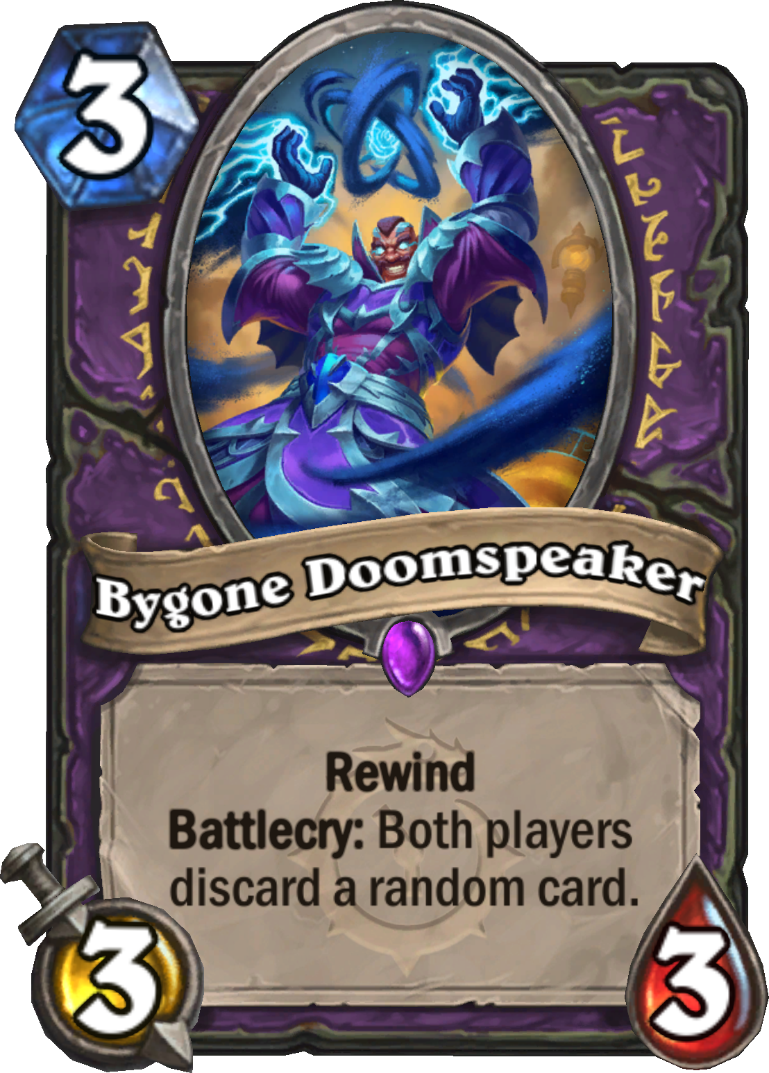We have one more card revealed, and it is a very different type of card. Bygone Doomspeaker offers disruption for late game Warlock strategies with a Rewind spin.