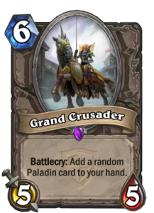Grand Crusader. It’s mini-Nefarian, and Nefarian is a very strong card in the right decks – value-oriented lists with lots of survival mechanics. I don’t know whether it’s possible to build a deck defensive enough to support the tempo loss on turn 6 as opposed to turn 9, but I am hopeful.
