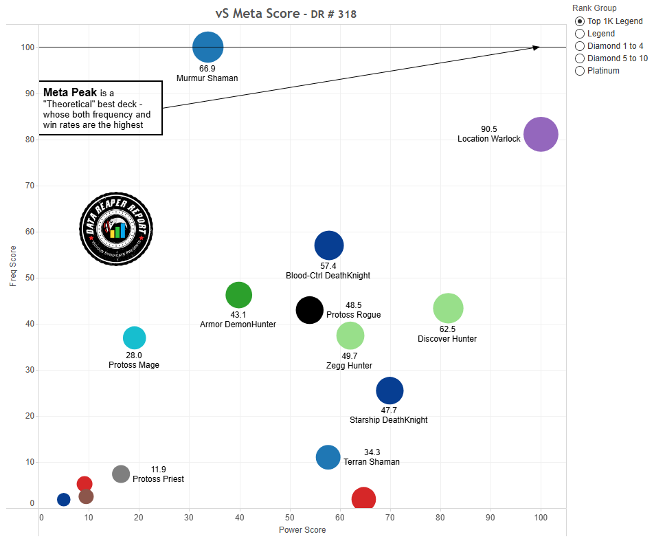 - There is a lot of hype surrounding Murmur Shaman at top legend, but the deck does not perform as well as it is perceived to. Its matchup spread does not look bad, but its dominant Armor DH matchup is in decline. It does well against Location Warlock too, but this is where the list of its winning matchups against popular meta decks end. Hunter is the biggest problem. Discover and Zegg Hunter are difficult to deal with and both have been on the rise. Its skill ceiling is also not as high as it is perceived, looking just slightly above average and comparable with Discover Hunter. However, we are concerned with its gameplay experience. If it ever becomes both popular and powerful as a result of big Hunter nerfs, the format could be in trouble. Hopefully, when Hunter nerfs do come, they are paired with a significant adjustment to Murmur.