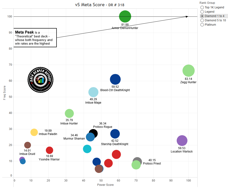 - Armor Demon Hunter looked like the best deck in the game in the first few hours of the expansion. We can still see how good it is throughout most of ladder, where the meta is not as advanced. However, the archetype has been on a steady decline in its performance across ladder, falling into Tier 3 at top legend. This was not even a steady decline. By day 3, we knew it was headed to Tier 3 at higher levels of play. Multiple counters have emerged and developed into top meta decks, leading to Armor DH facing an increasingly hostile field. Shaman is a problem. Hunter is a problem. Rogue is a problem. The deck hard counters Death Knight and Mage, does well into Warlock, but struggles into almost everything else. It will likely be gone tomorrow. But, it should be remembered as a Snake Warlock rather than a Galakrond Shaman. It will be gone because of its play experience, rather than its power.