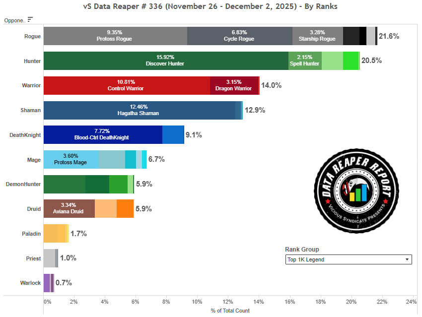 - On paper, Control Warrior should have declined in its performance considering the rise of Protoss Rogue and the decline of Discover Hunter, but it has also benefitted from the declined popularity of Elise in Discover Hunter and the change in its own card choices that improve some of its other matchups (More Bulwark and less Dirty Rat).