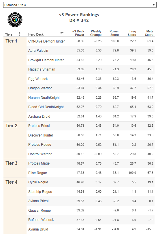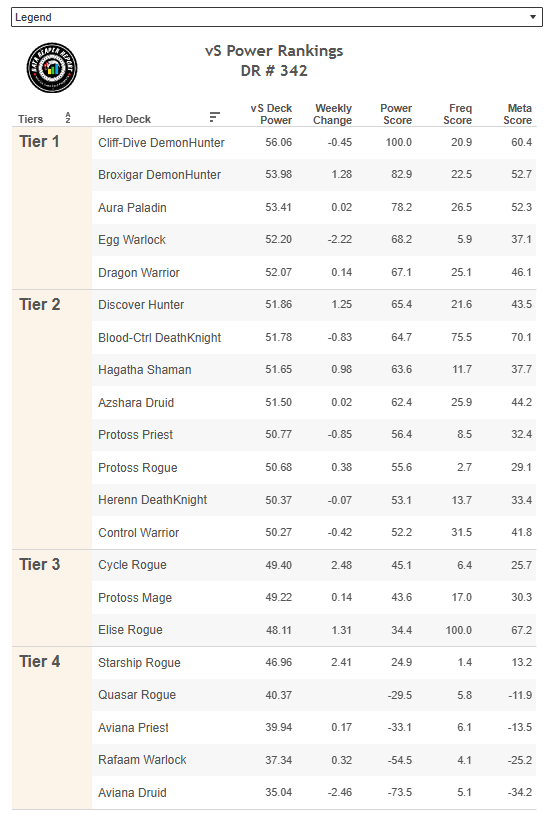 Class/Archetype Distribution | Class Frequency | Matchup Winrates | vS Power Rankings | vS Meta Score | Class Analysis & Decklists | Meta Breaker of the Week | How to Contribute | Credits