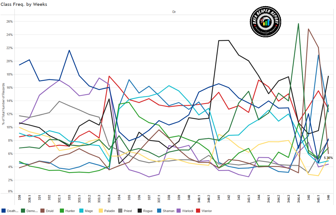 Face Hunter looks unchanged, slightly rising in play. The class has not seen much development since the early days and looks relatively unaffected by the balance patch.